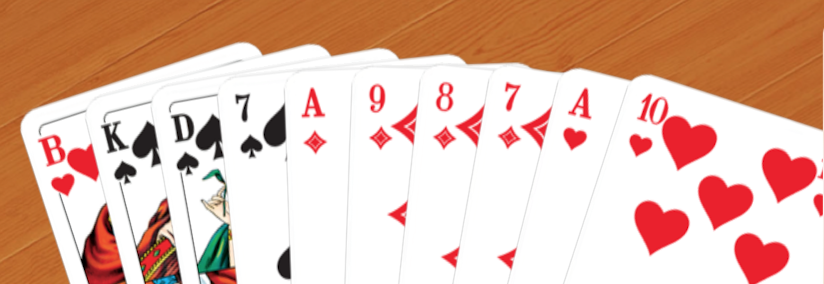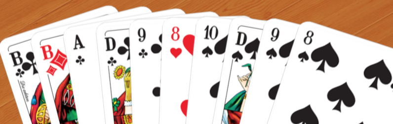 Eine Karte mit 8,5 Kinback-Punkten. Die Wahrscheinlichkeit, dass die Trumpf  3:3 stehen liegt bei ca. 40%. Die Wahrscheinlichkeit, dass As und 10 von Herz einen Stich machen bei ca. 70%. In 40% aller Fälle stehen die Pik 2:2.