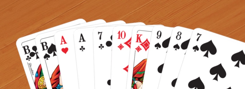 Der Spieler, der spricht, nennt als höchstes Reizgebot seinen Spielwert. Er sagt also „22“, wenn er ein einfaches Pik Spiel hat. Danach passt er.